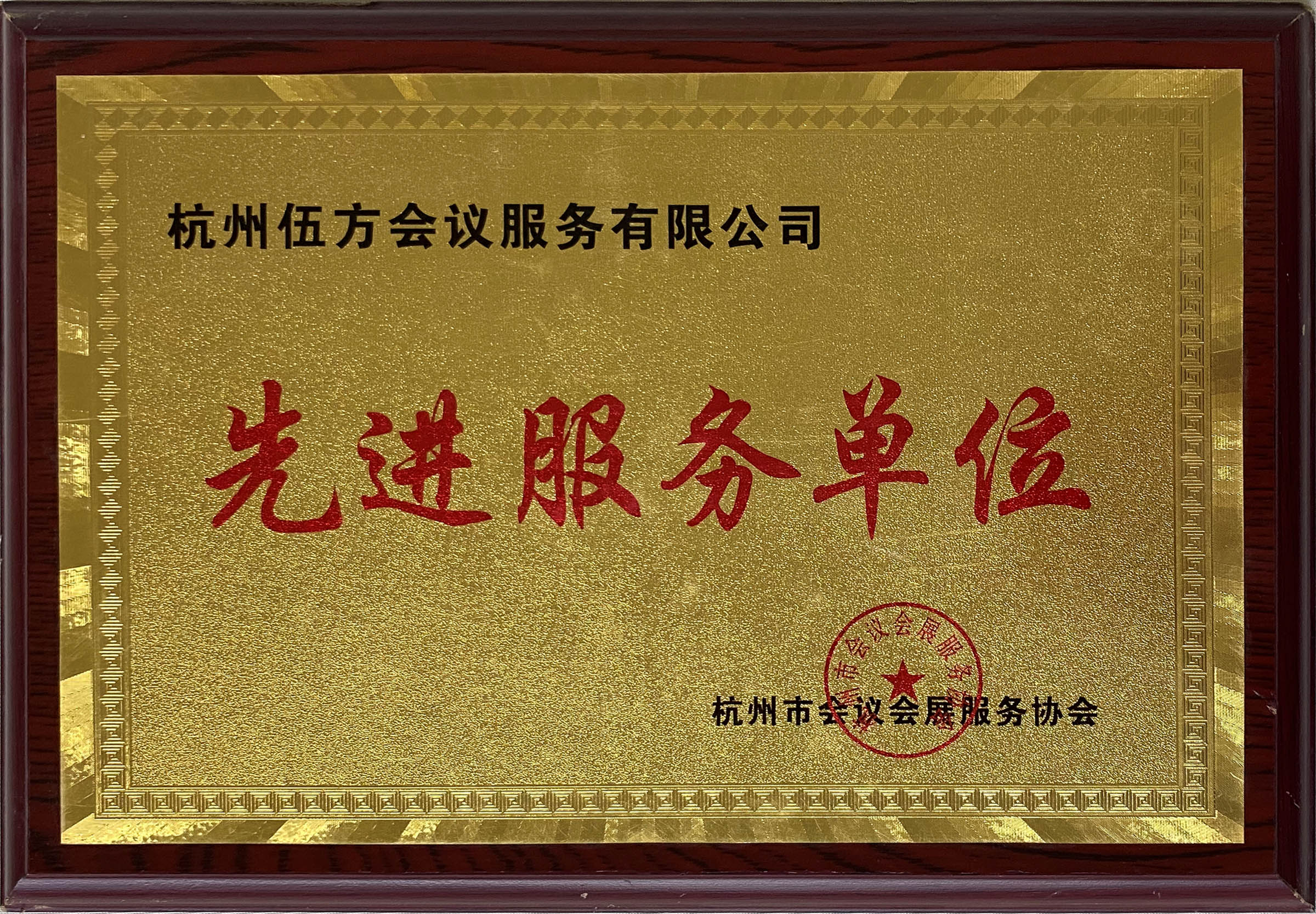 杭州市會議會展服務(wù)協(xié)會為會議活動公司杭州伍方會議服務(wù)有限公司授予“先進服務(wù)單位”榮譽獎牌。
